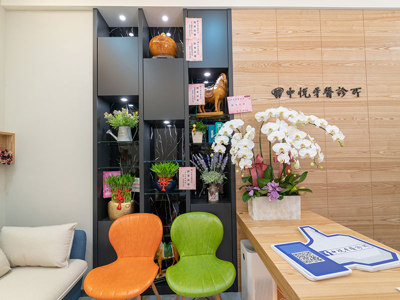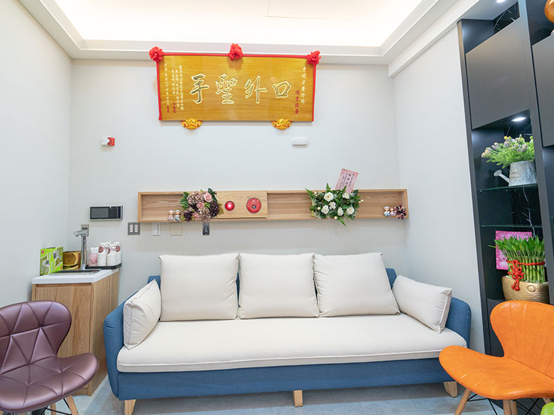 進入診所映入眼簾的是一樓挑高大廳接待櫃檯,優雅舒適現代化的裝潢,搭配著柔和燈光及輕柔音樂,完全打造出無壓力看診的空間,優質的環境,令人感到舒適放鬆,並提供家屬舒適等候區域,免費無線網路(Wi-Fi)可供使用。